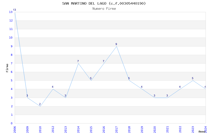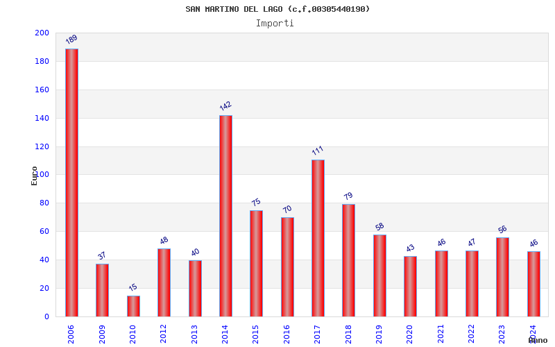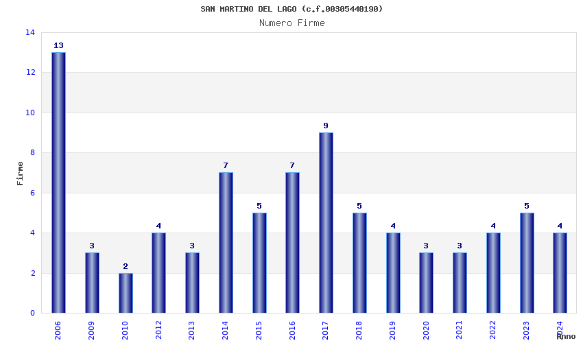 | Anno | Firme | Importi | Media | Naz. | Reg. | Prov. | Comu. |
