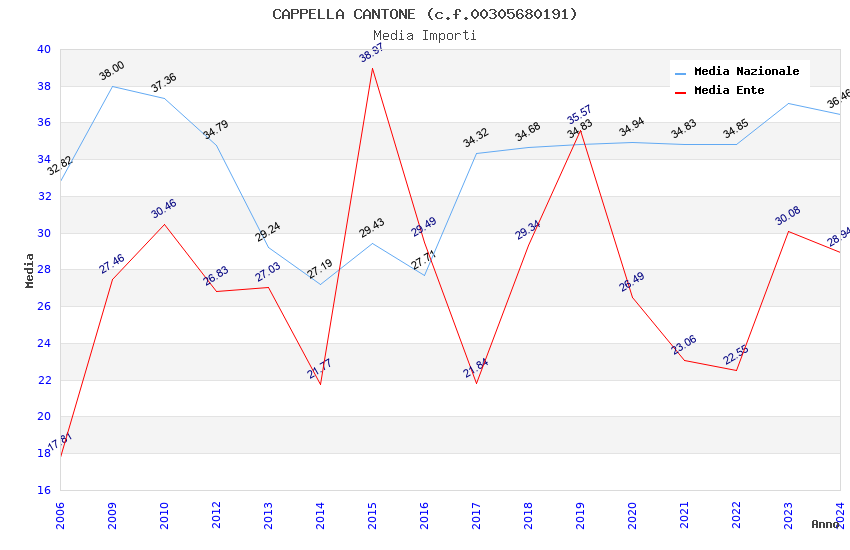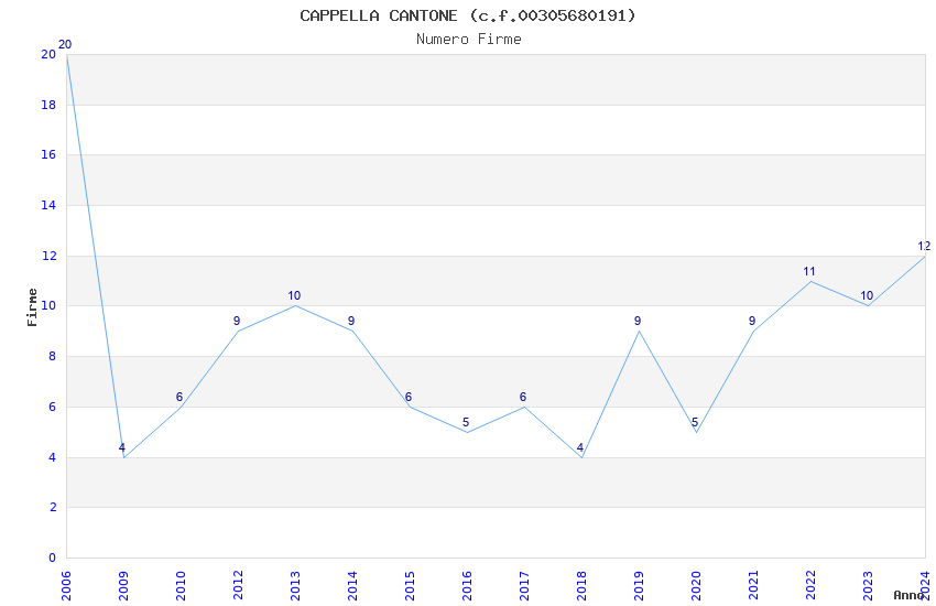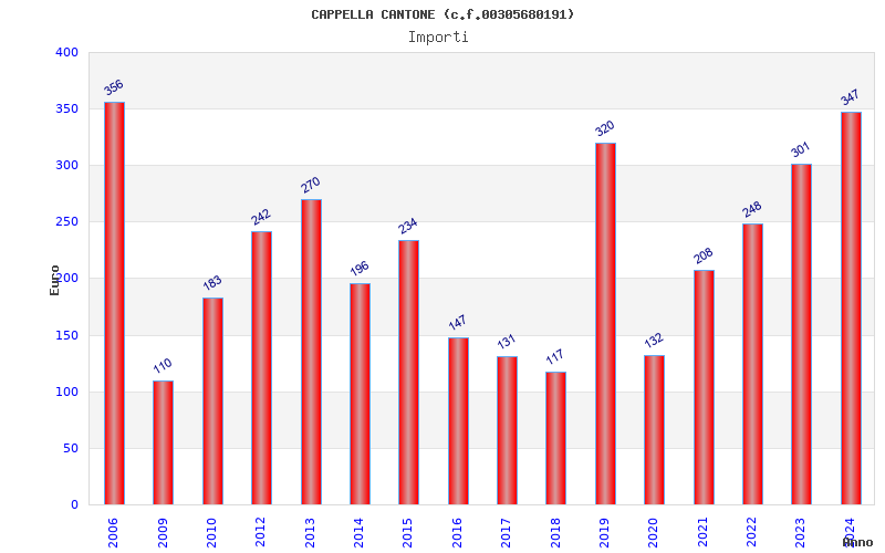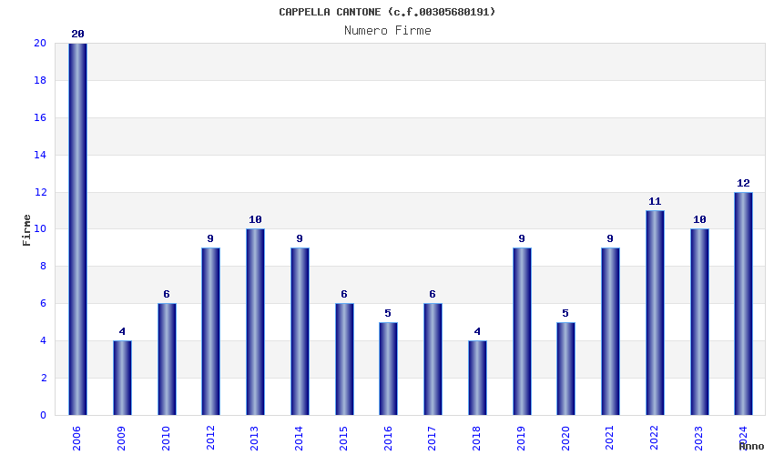 | Anno | Firme | Importi | Media | Naz. | Reg. | Prov. | Comu. |