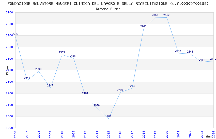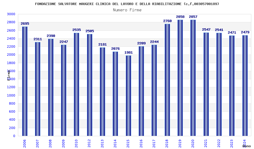 | Anno | Firme | Importi | Media | Naz. | Reg. | Prov. | Comu. |