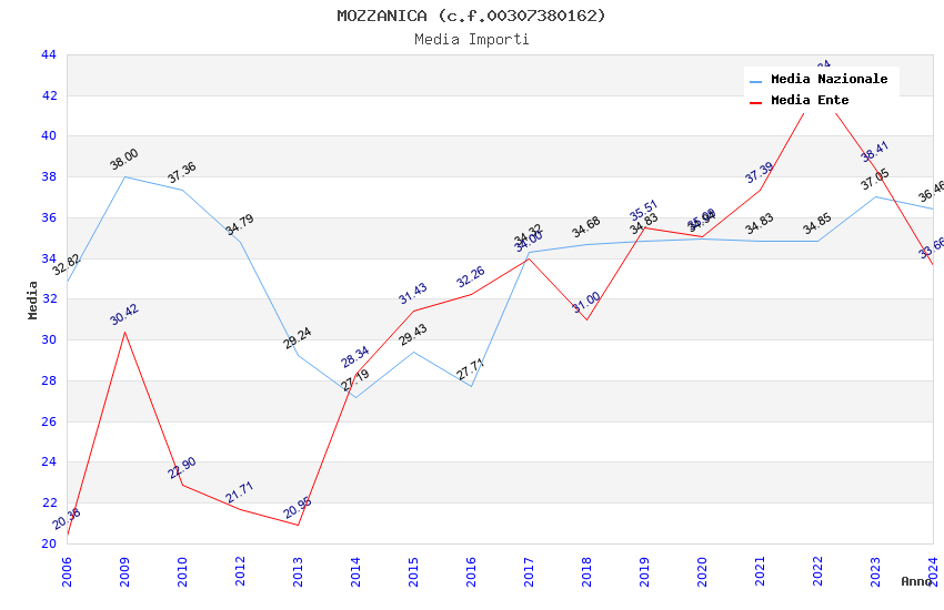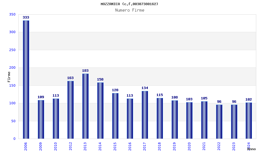 | Anno | Firme | Importi | Media | Naz. | Reg. | Prov. | Comu. |