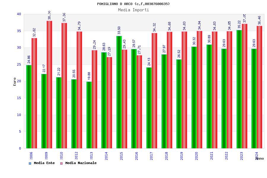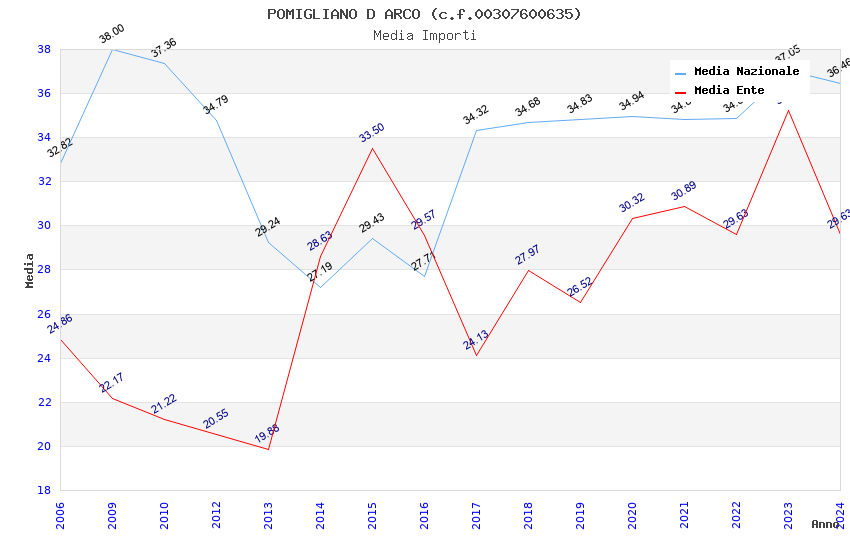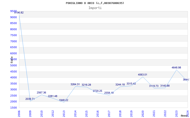 | Anno | Firme | Importi | Media | Naz. | Reg. | Prov. | Comu. |