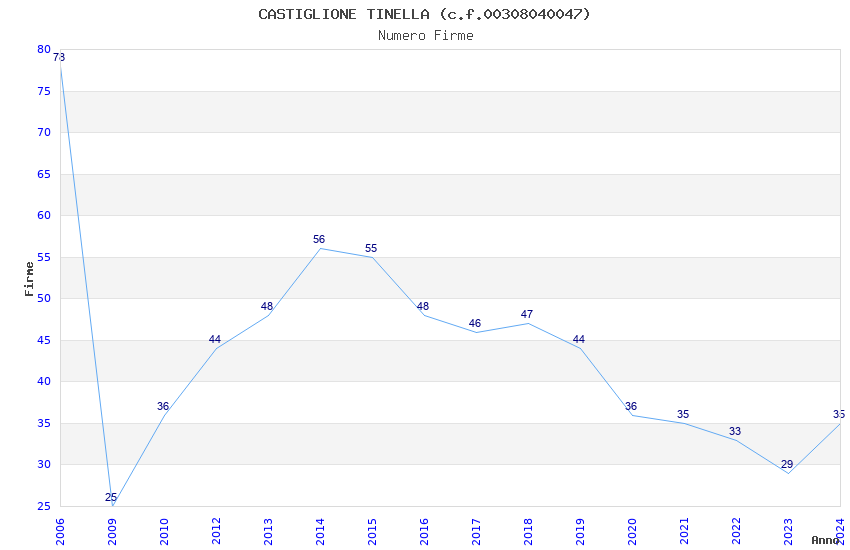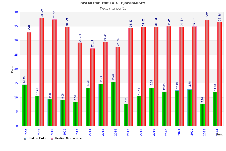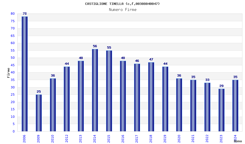 | Anno | Firme | Importi | Media | Naz. | Reg. | Prov. | Comu. |