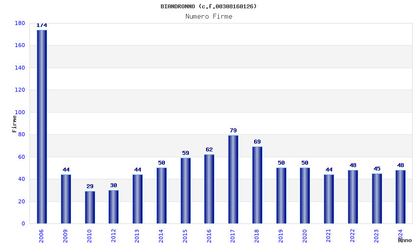 Anno Firme Importi Media Naz. Reg. Prov. Comu.