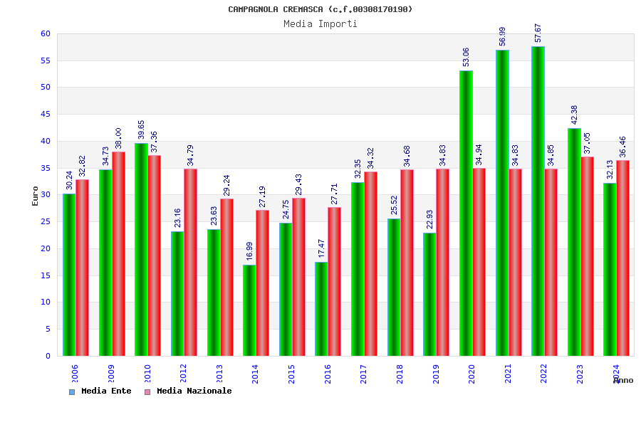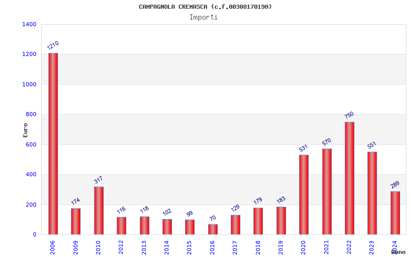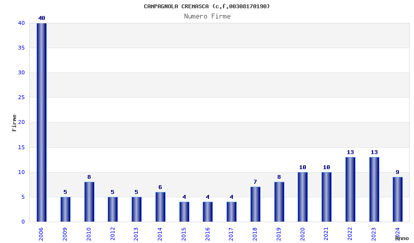 | Anno | Firme | Importi | Media | Naz. | Reg. | Prov. | Comu. |