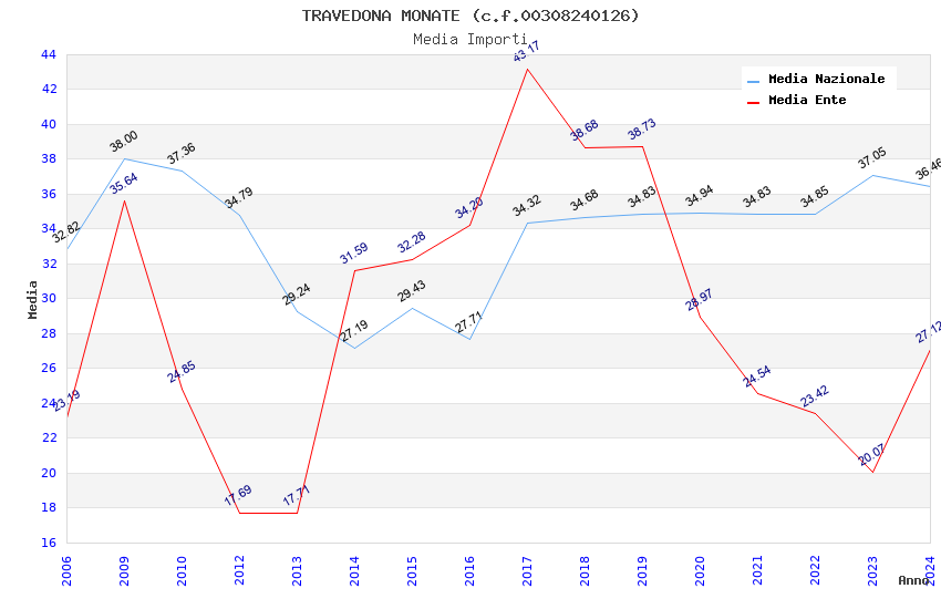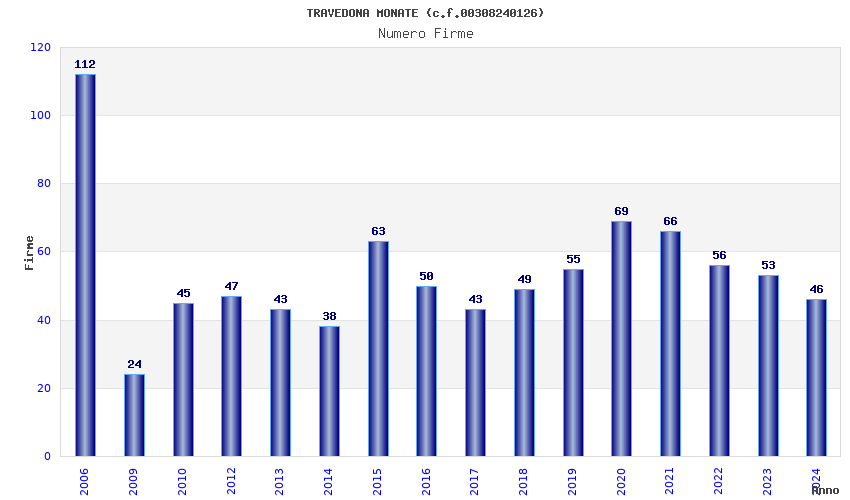 | Anno | Firme | Importi | Media | Naz. | Reg. | Prov. | Comu. |