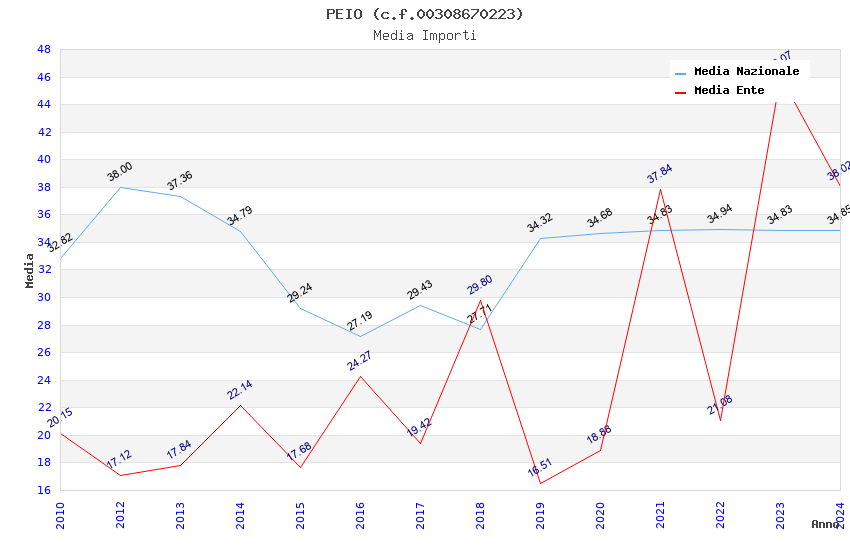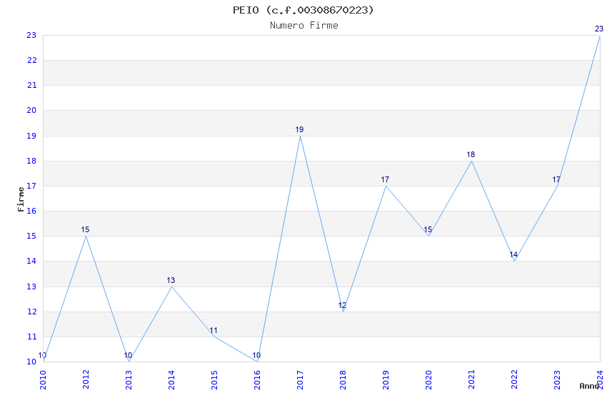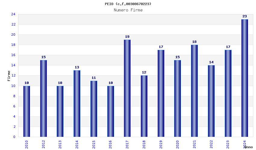 | Anno | Firme | Importi | Media | Naz. | Reg. | Prov. | Comu. |
