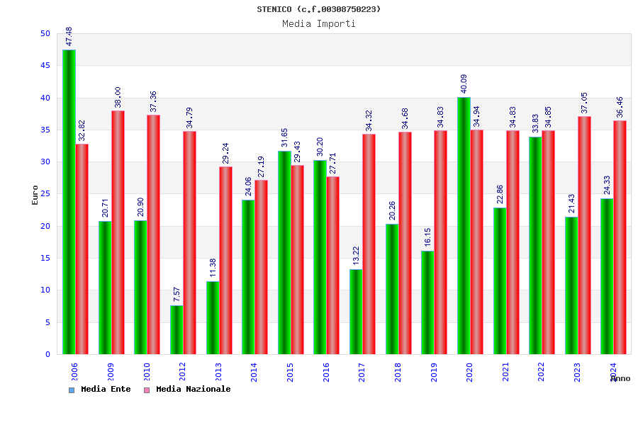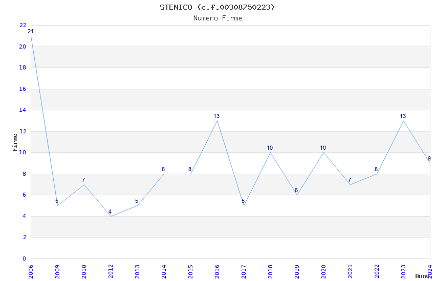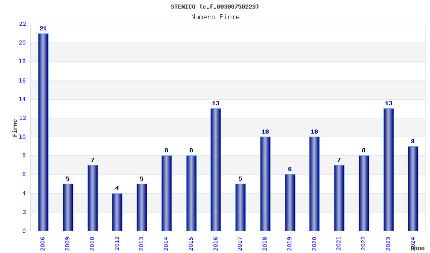 | Anno | Firme | Importi | Media | Naz. | Reg. | Prov. | Comu. |