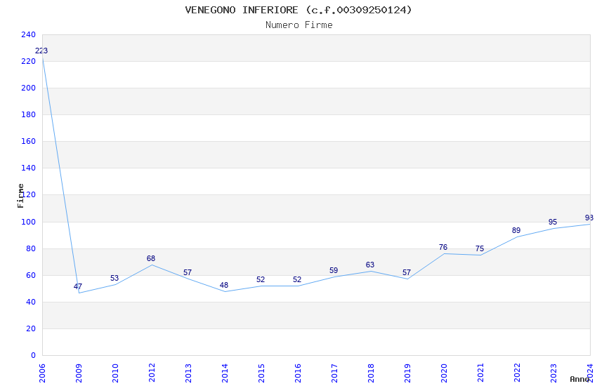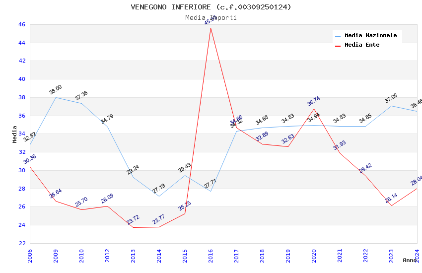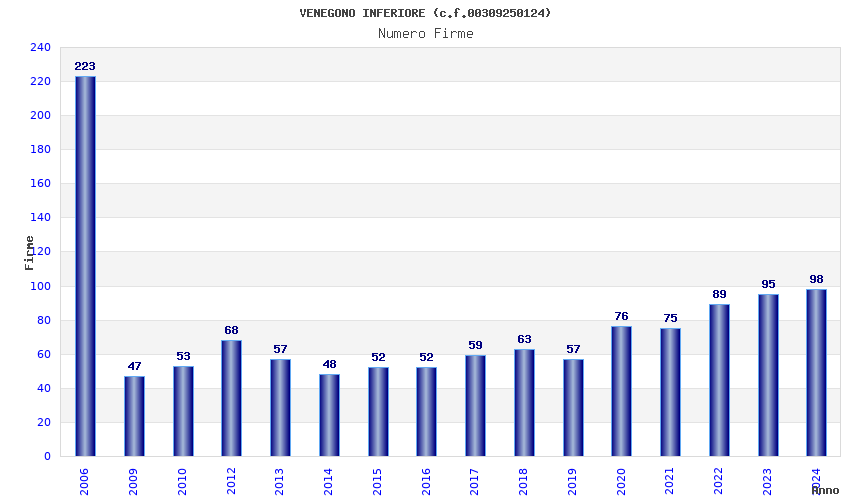 | Anno | Firme | Importi | Media | Naz. | Reg. | Prov. | Comu. |