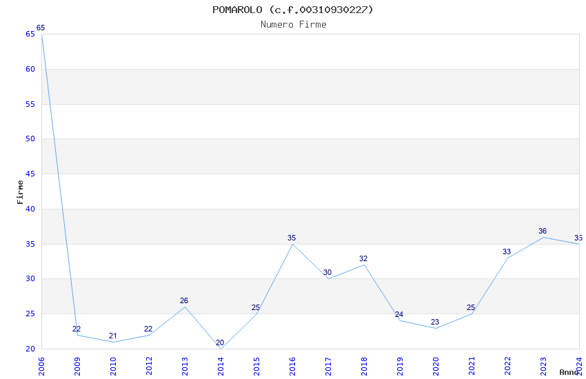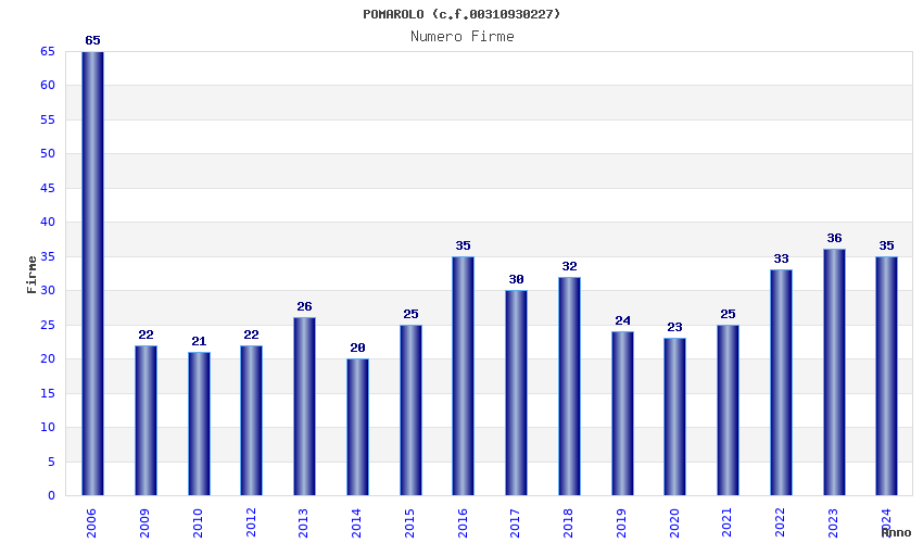 | Anno | Firme | Importi | Media | Naz. | Reg. | Prov. | Comu. |