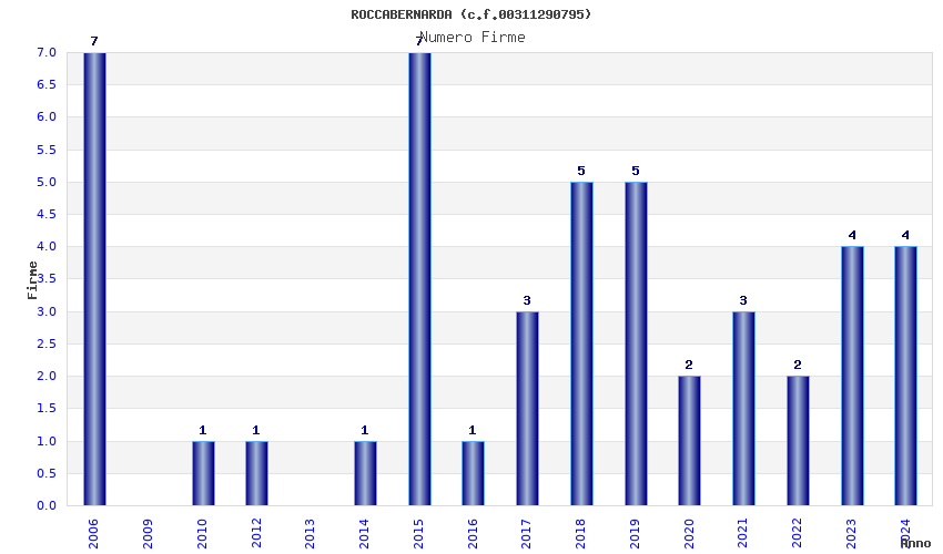 | Anno | Firme | Importi | Media | Naz. | Reg. | Prov. | Comu. |