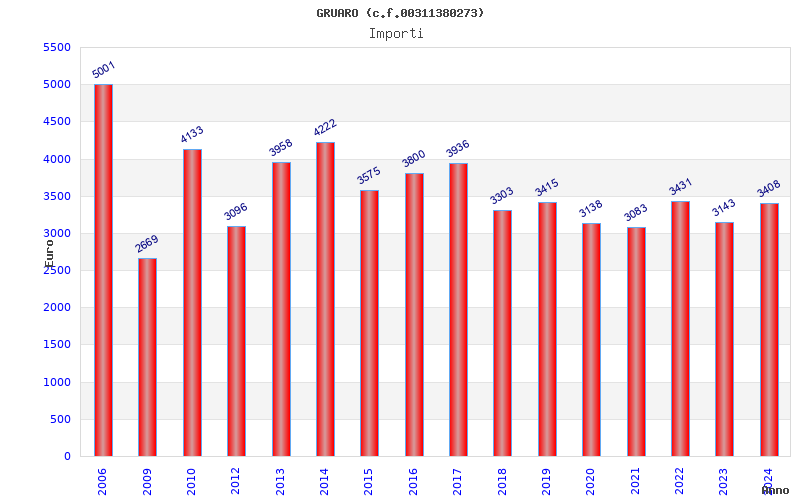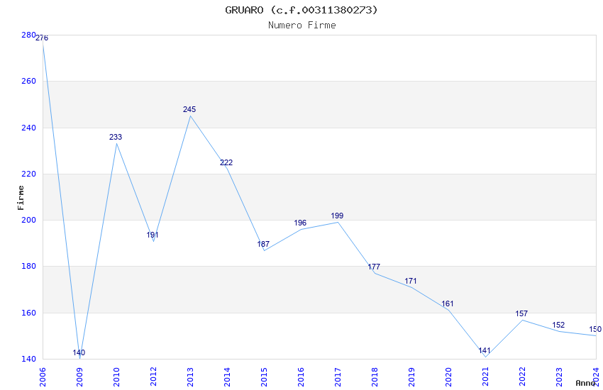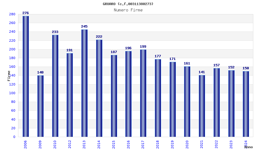 | Anno | Firme | Importi | Media | Naz. | Reg. | Prov. | Comu. |