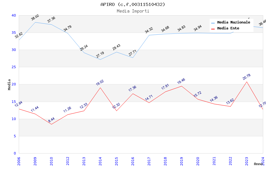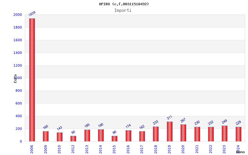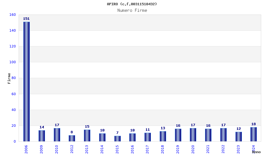 | Anno | Firme | Importi | Media | Naz. | Reg. | Prov. | Comu. |