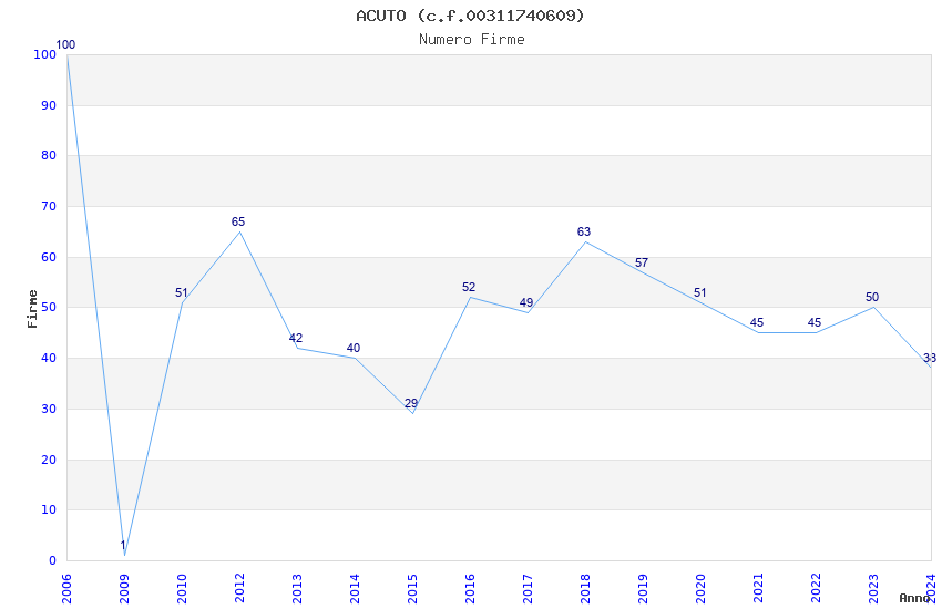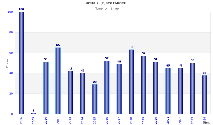 | Anno | Firme | Importi | Media | Naz. | Reg. | Prov. | Comu. |