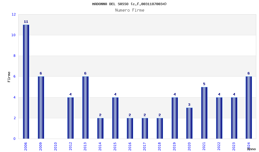 | Anno | Firme | Importi | Media | Naz. | Reg. | Prov. | Comu. |