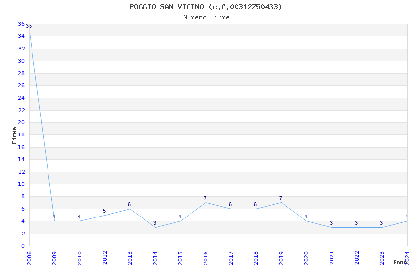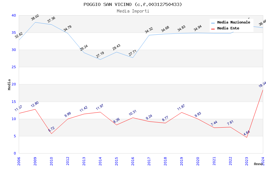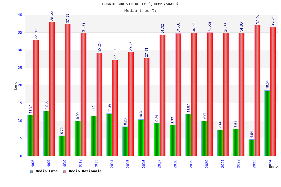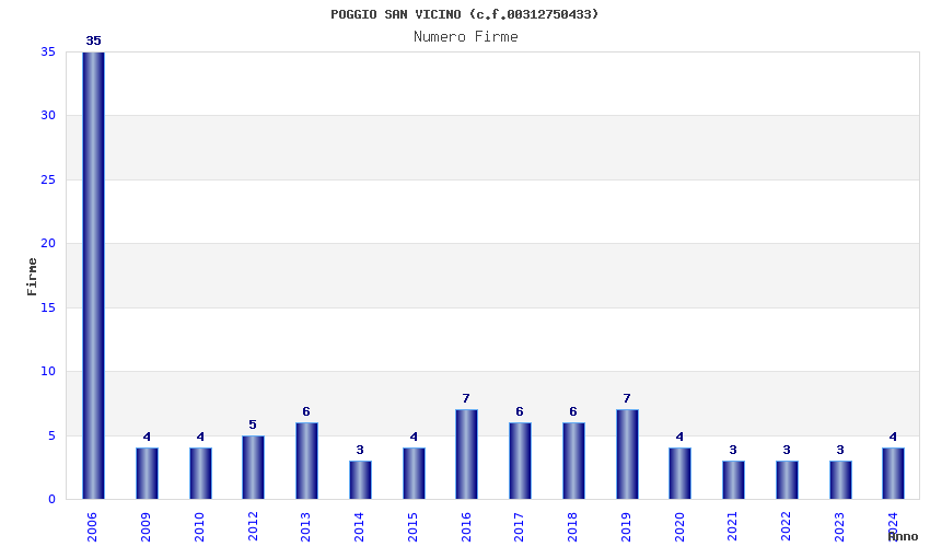 | Anno | Firme | Importi | Media | Naz. | Reg. | Prov. | Comu. |