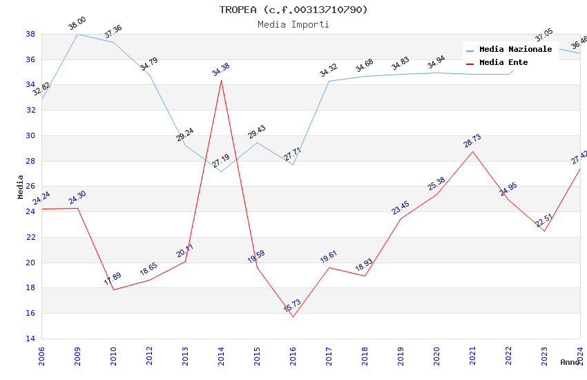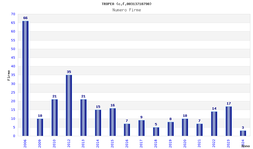 | Anno | Firme | Importi | Media | Naz. | Reg. | Prov. | Comu. |