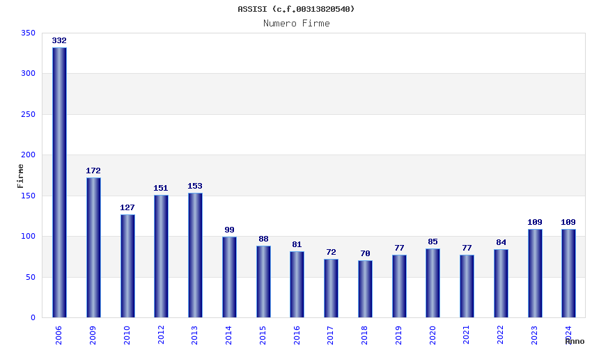 | Anno | Firme | Importi | Media | Naz. | Reg. | Prov. | Comu. |