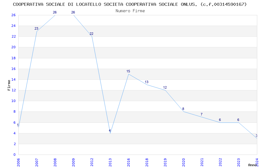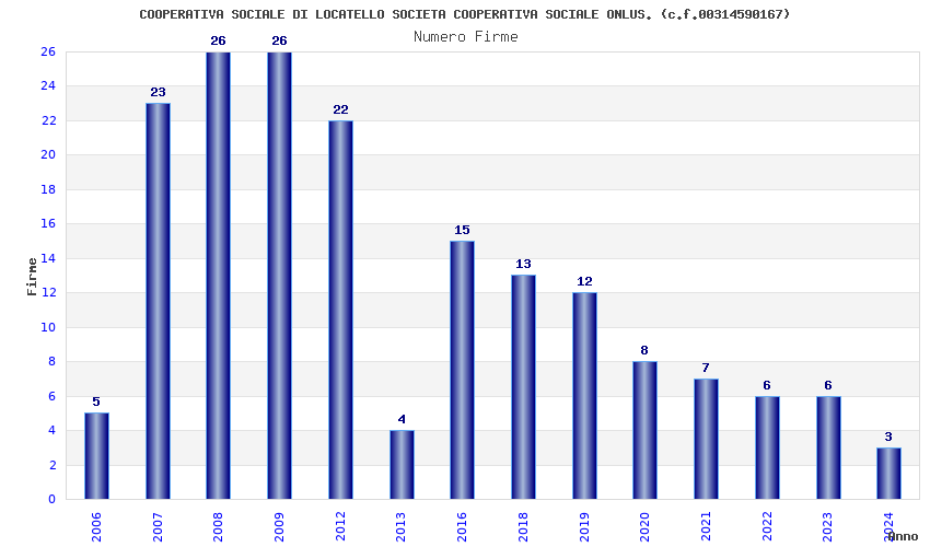 | Anno | Firme | Importi | Media | Naz. | Reg. | Prov. | Comu. |