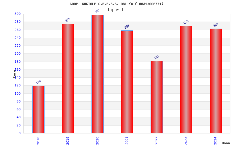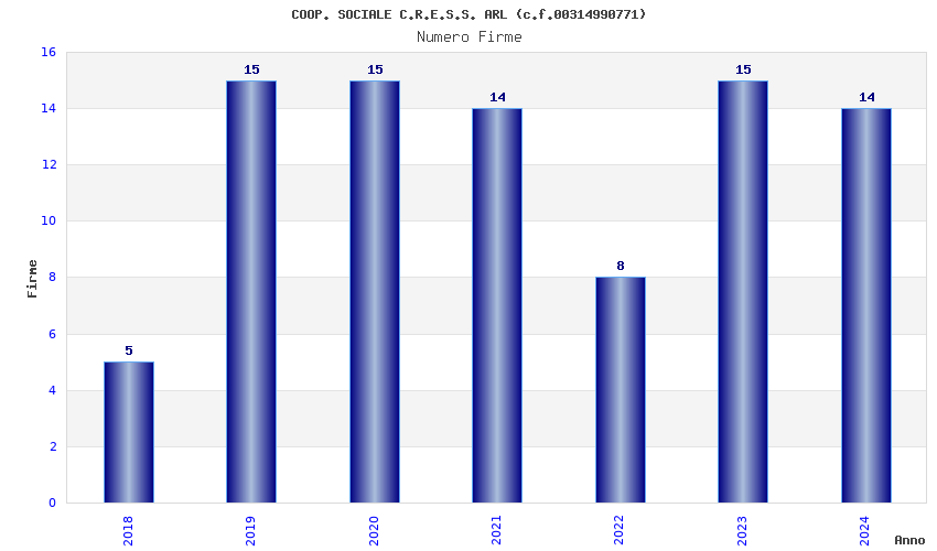 | Anno | Firme | Importi | Media | Naz. | Reg. | Prov. | Comu. |