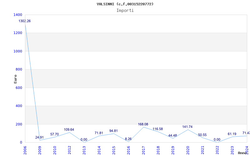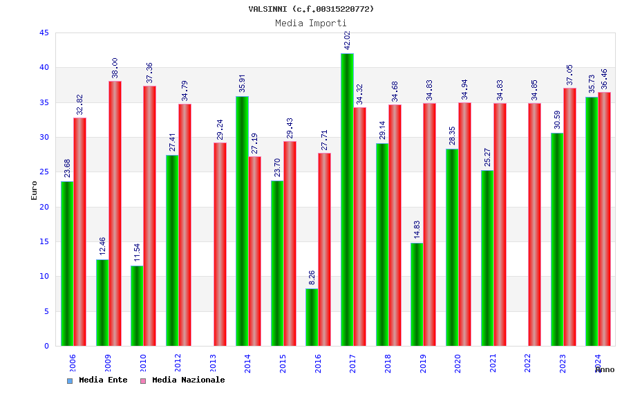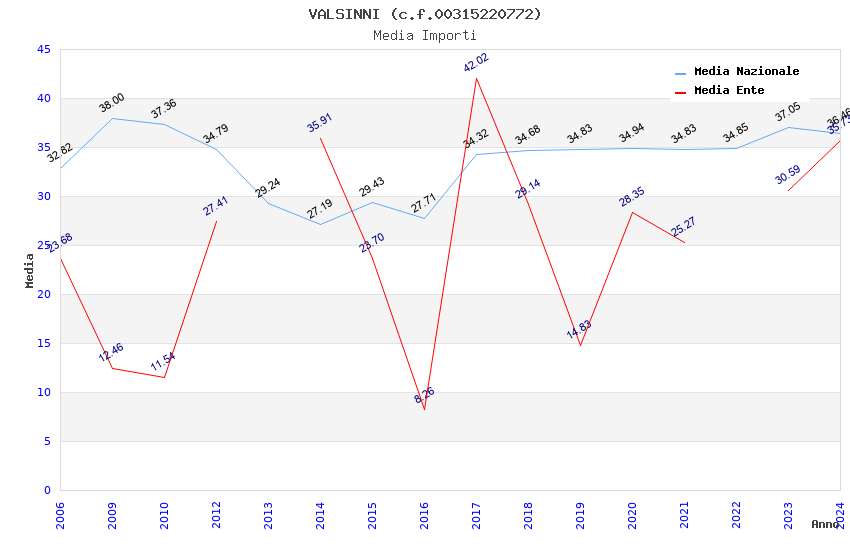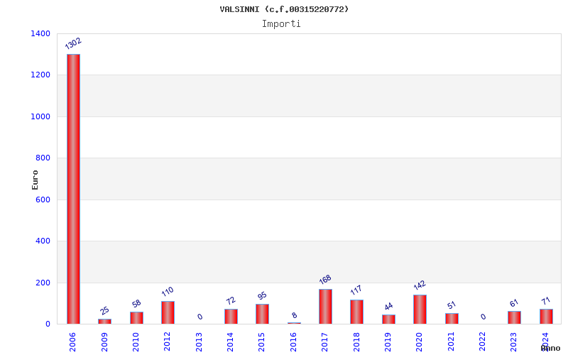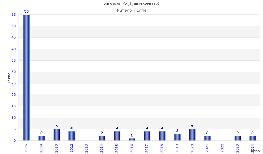 | Anno | Firme | Importi | Media | Naz. | Reg. | Prov. | Comu. |