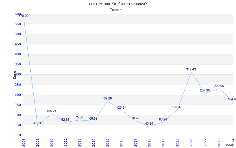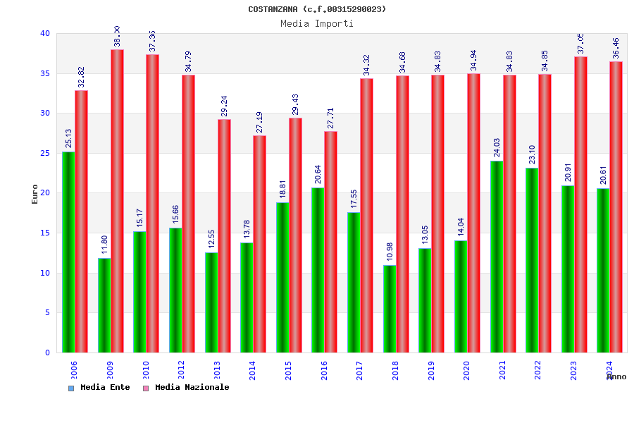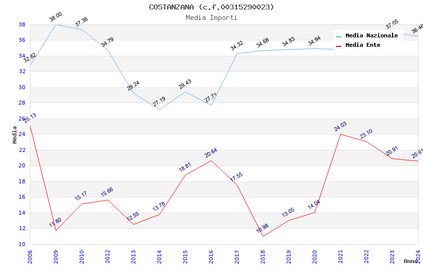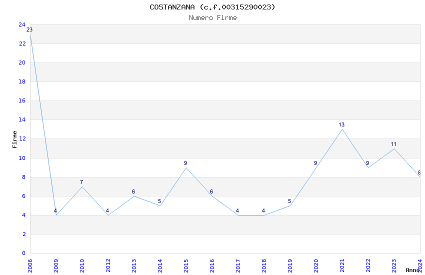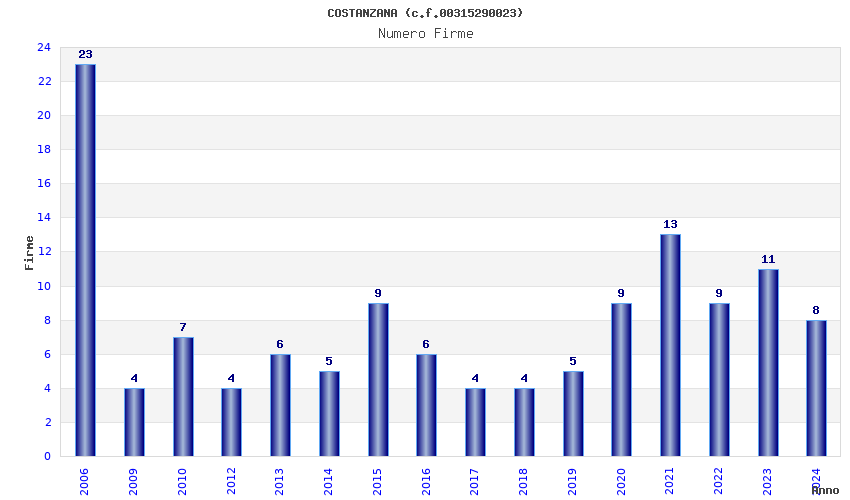 | Anno | Firme | Importi | Media | Naz. | Reg. | Prov. | Comu. |