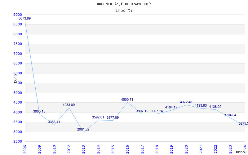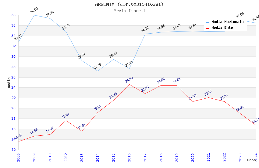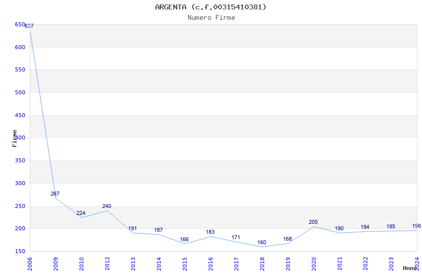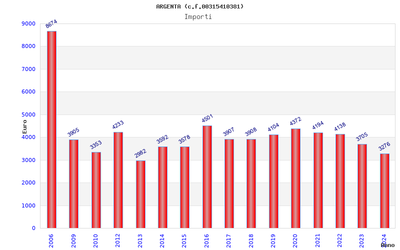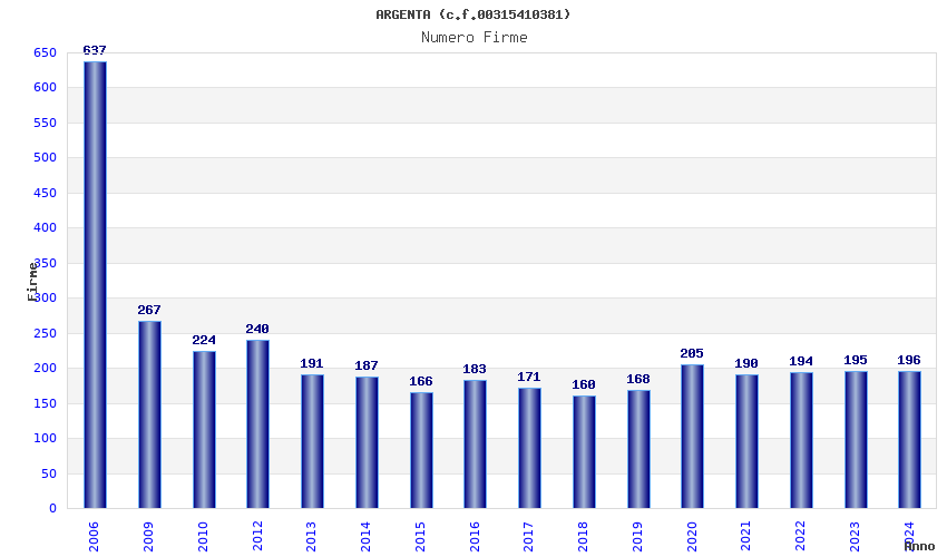 | Anno | Firme | Importi | Media | Naz. | Reg. | Prov. | Comu. |