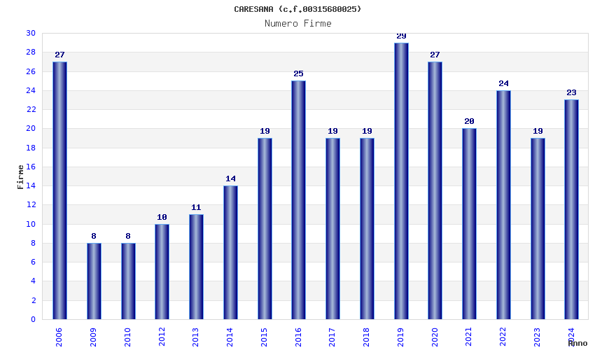 Anno Firme Importi Media Naz. Reg. Prov. Comu.