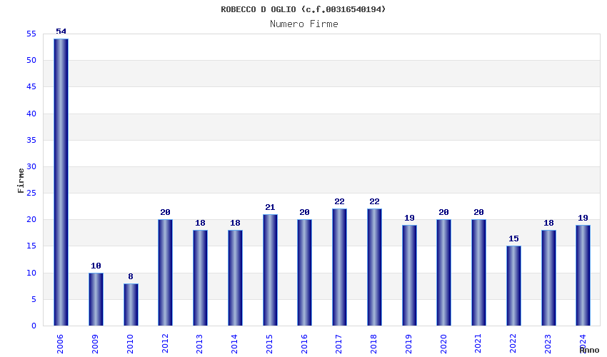 | Anno | Firme | Importi | Media | Naz. | Reg. | Prov. | Comu. |