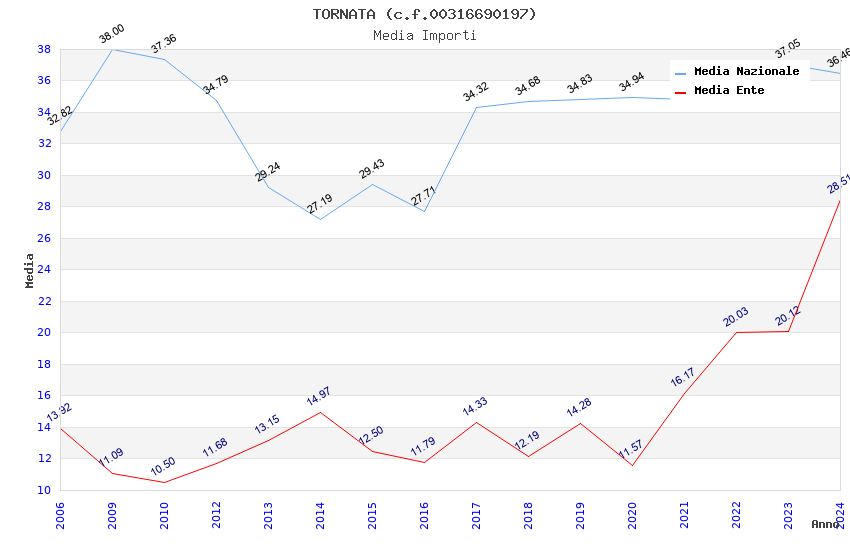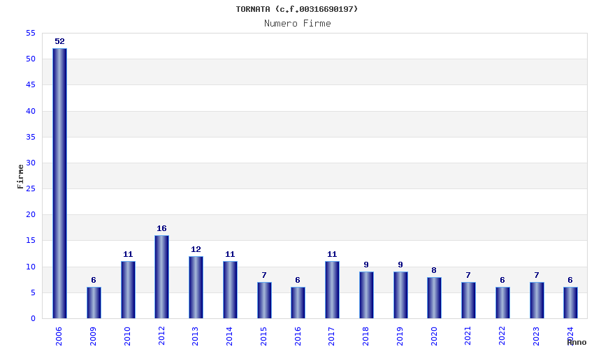 | Anno | Firme | Importi | Media | Naz. | Reg. | Prov. | Comu. |