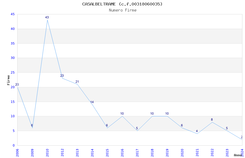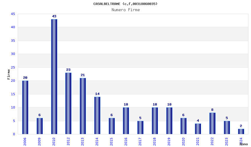 | Anno | Firme | Importi | Media | Naz. | Reg. | Prov. | Comu. |