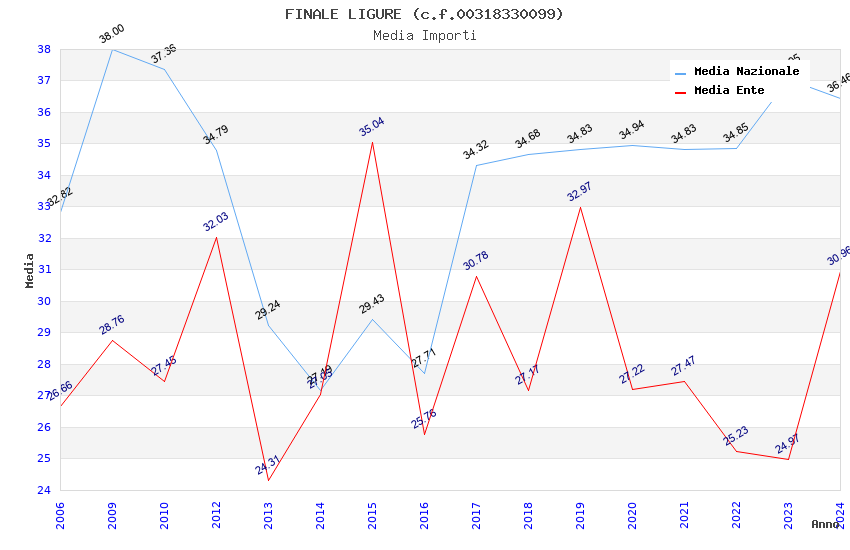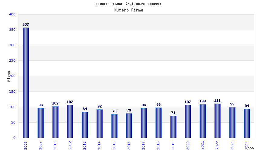 | Anno | Firme | Importi | Media | Naz. | Reg. | Prov. | Comu. |