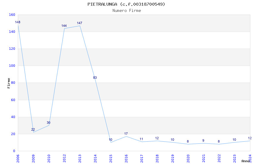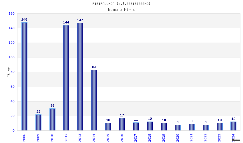 | Anno | Firme | Importi | Media | Naz. | Reg. | Prov. | Comu. |