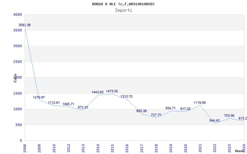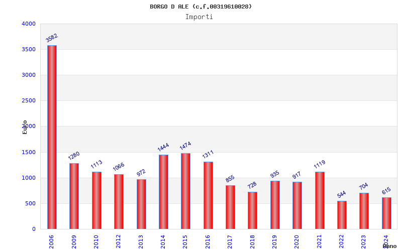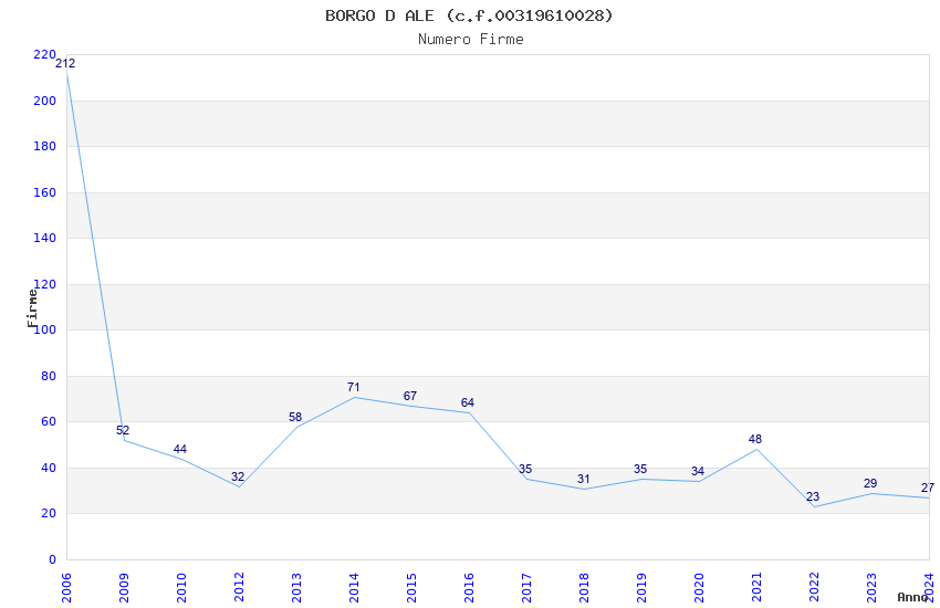 | Anno | Firme | Importi | Media | Naz. | Reg. | Prov. | Comu. |