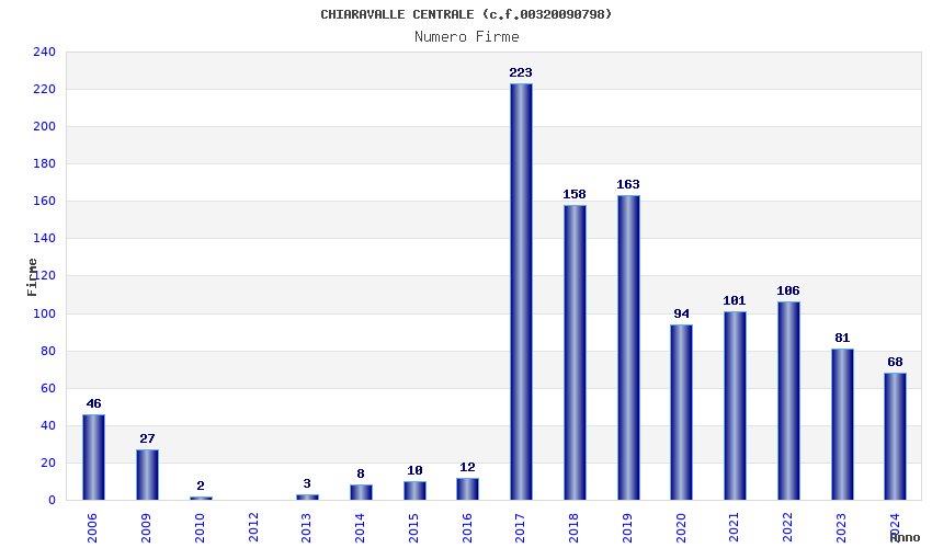 | Anno | Firme | Importi | Media | Naz. | Reg. | Prov. | Comu. |