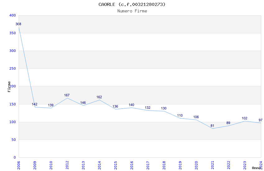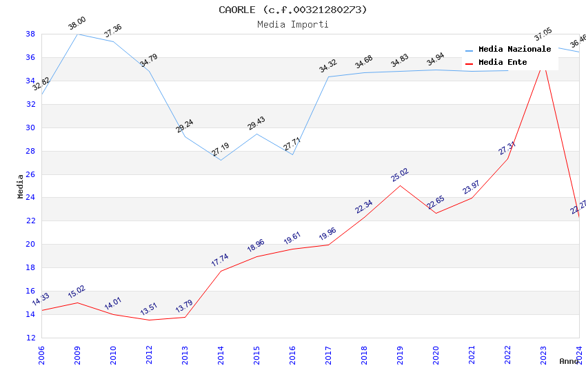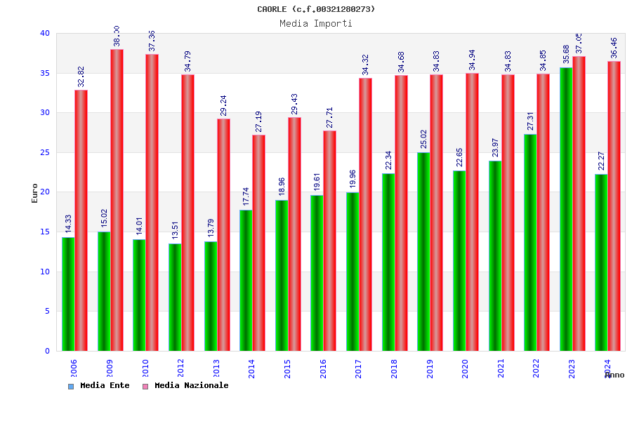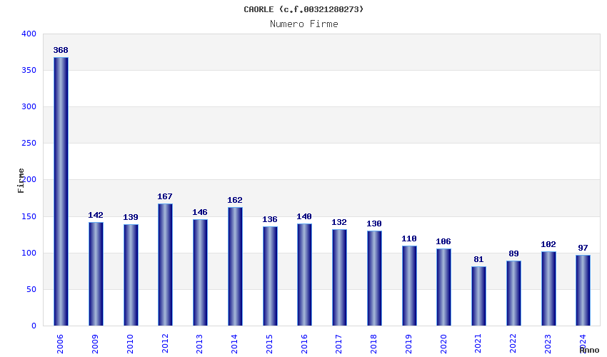 | Anno | Firme | Importi | Media | Naz. | Reg. | Prov. | Comu. |