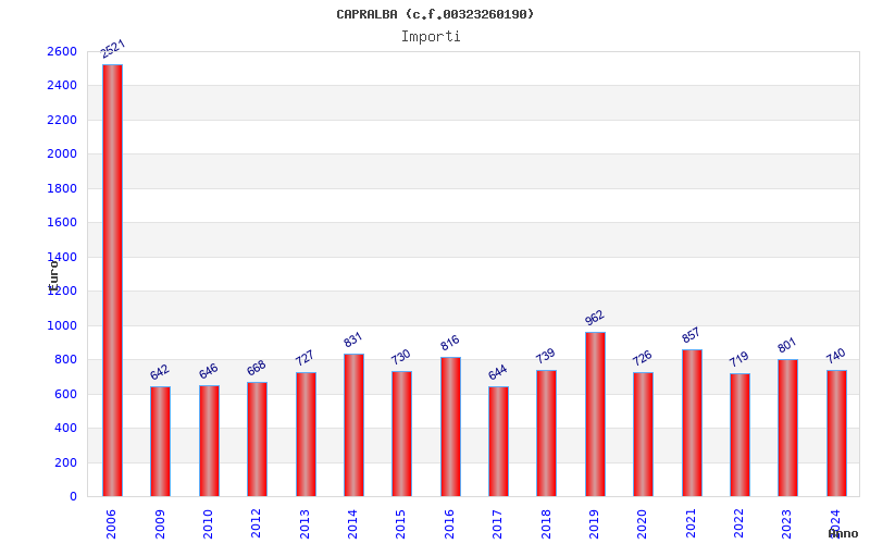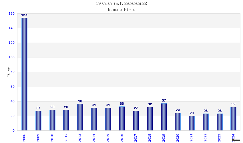 | Anno | Firme | Importi | Media | Naz. | Reg. | Prov. | Comu. |