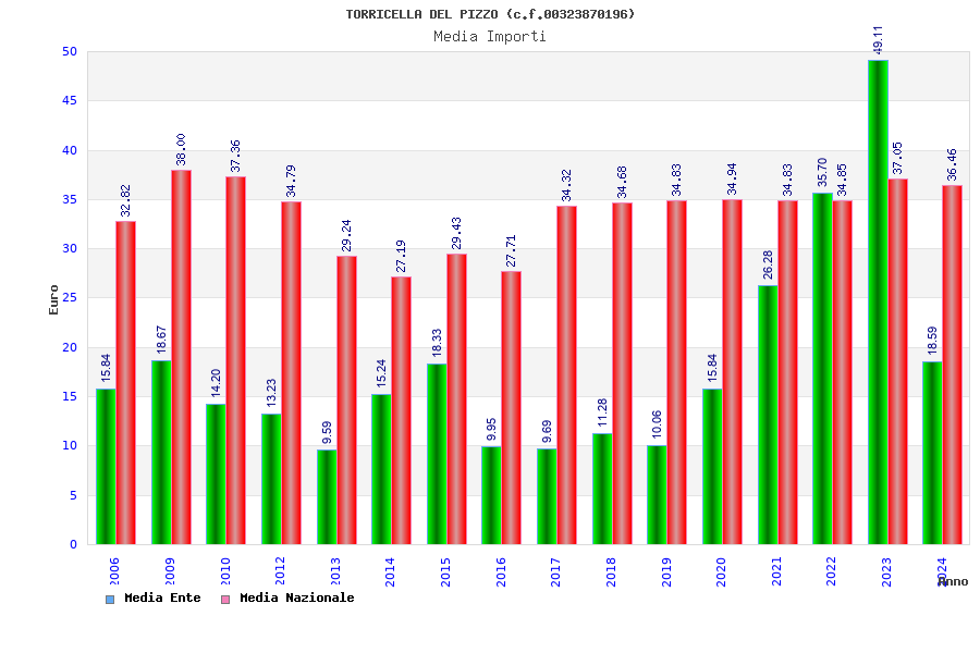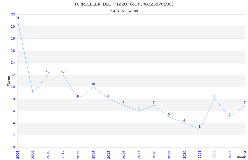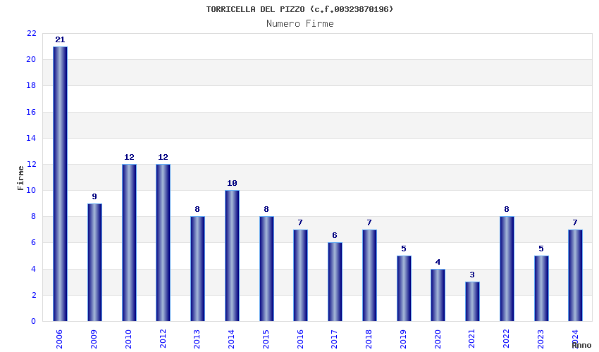 | Anno | Firme | Importi | Media | Naz. | Reg. | Prov. | Comu. |