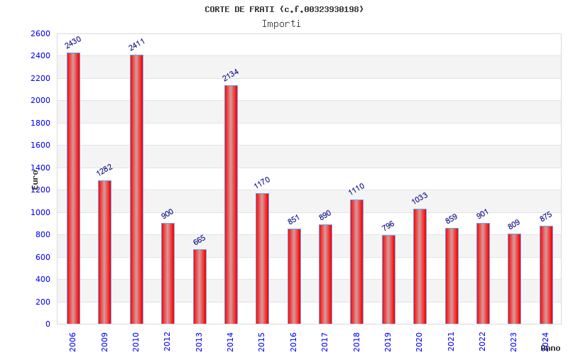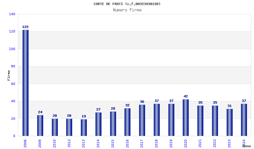 | Anno | Firme | Importi | Media | Naz. | Reg. | Prov. | Comu. |