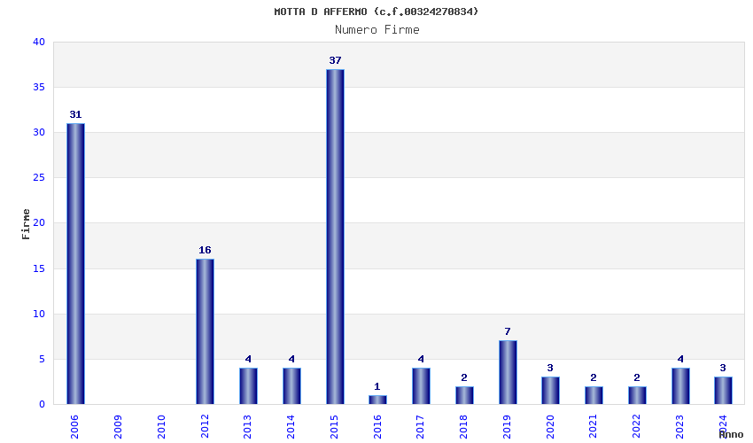 | Anno | Firme | Importi | Media | Naz. | Reg. | Prov. | Comu. |