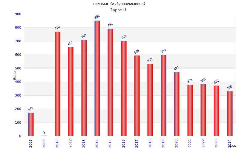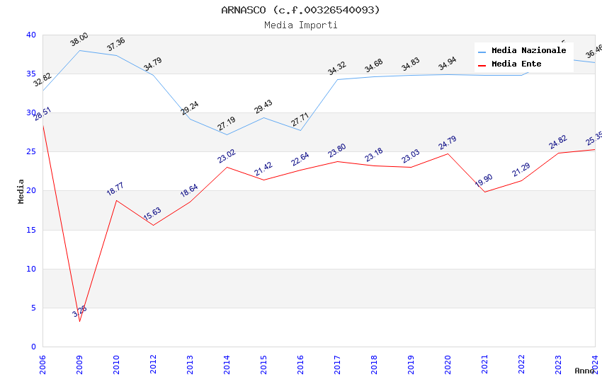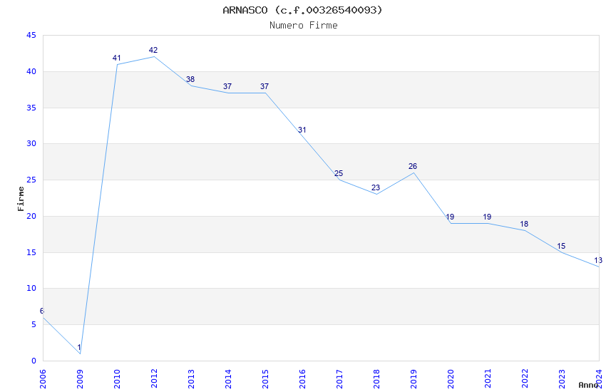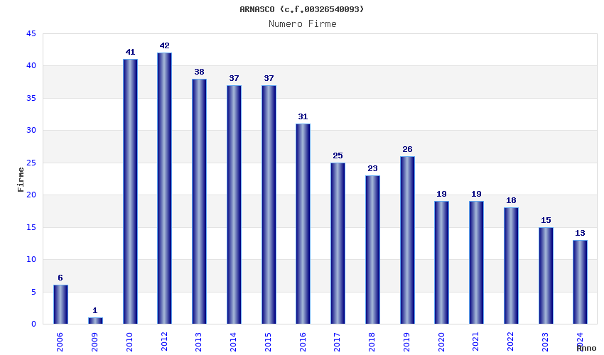 | Anno | Firme | Importi | Media | Naz. | Reg. | Prov. | Comu. |