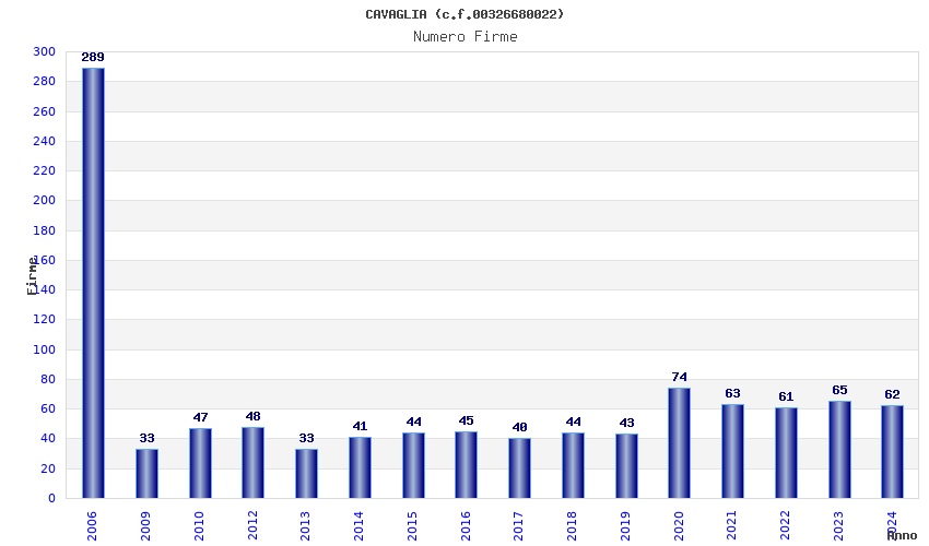 Anno Firme Importi Media Naz. Reg. Prov. Comu.
