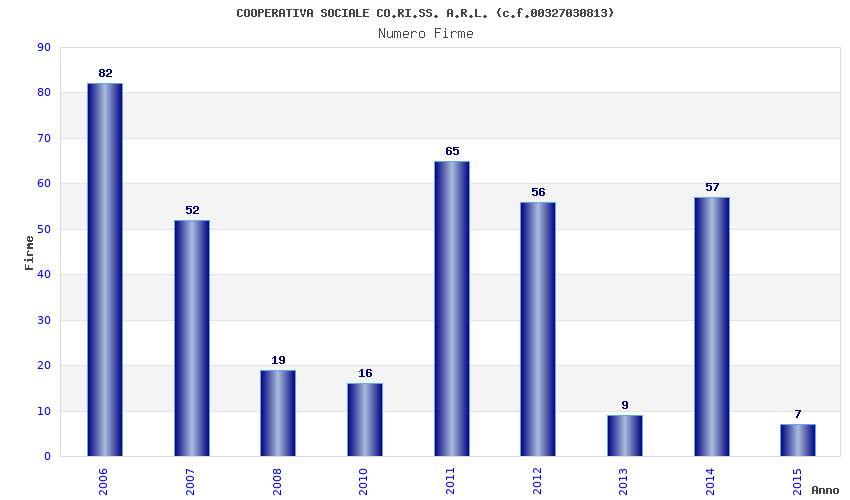 | Anno | Firme | Importi | Media | Naz. | Reg. | Prov. | Comu. |