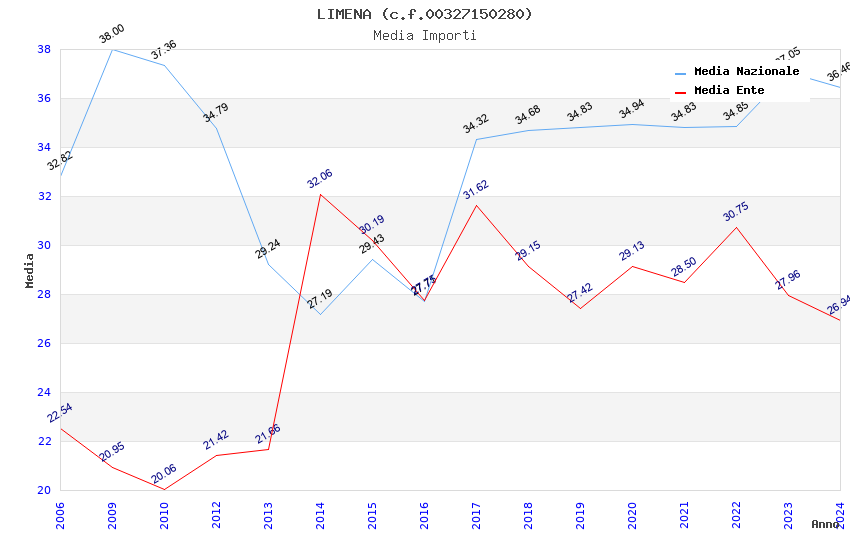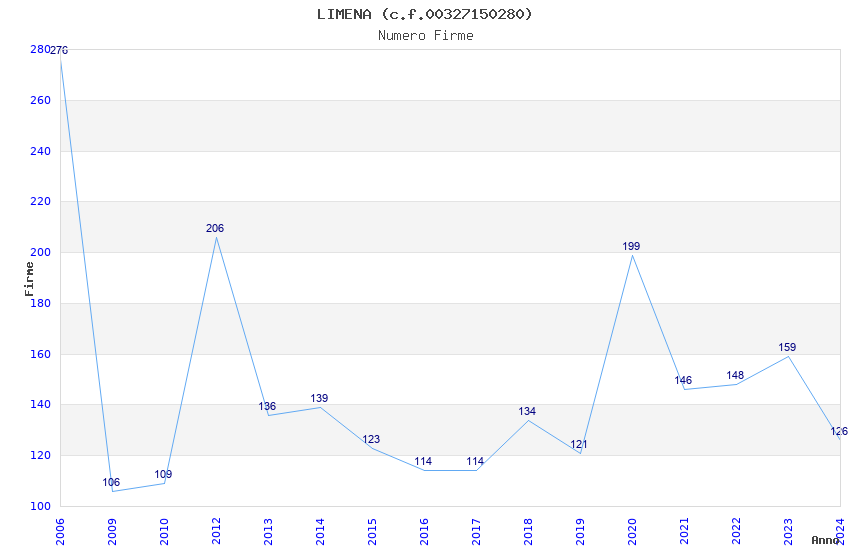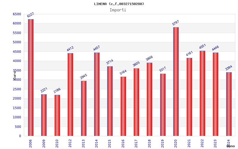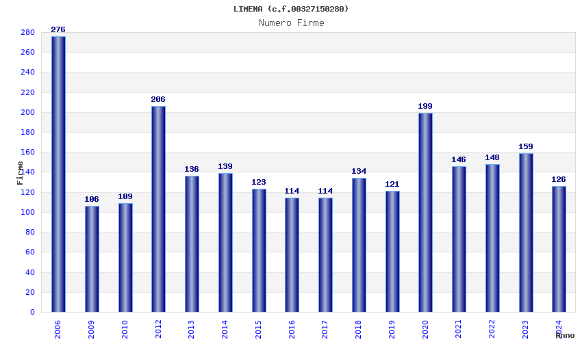 | Anno | Firme | Importi | Media | Naz. | Reg. | Prov. | Comu. |
