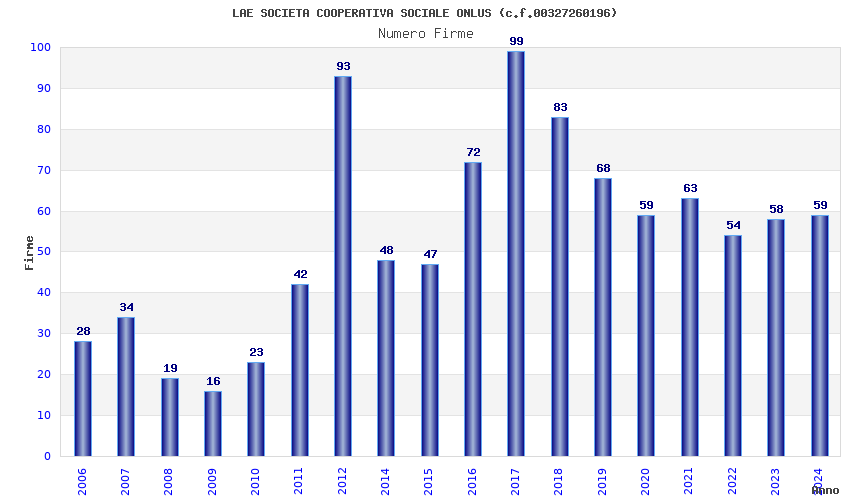 | Anno | Firme | Importi | Media | Naz. | Reg. | Prov. | Comu. |