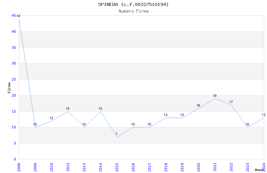 | 2006 | 44 | 550,56 | 12,51 | 22.949 | 5.623 | 326 | 1 |