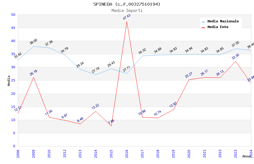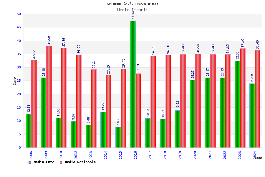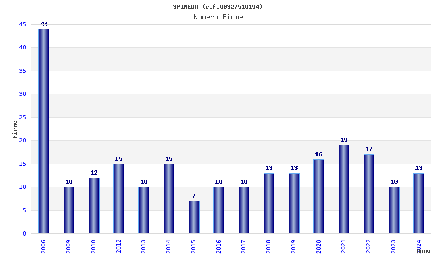 | Anno | Firme | Importi | Media | Naz. | Reg. | Prov. | Comu. |