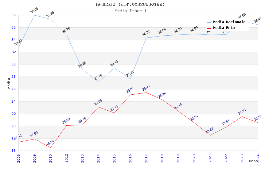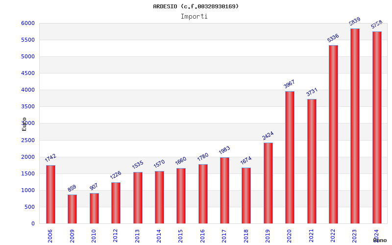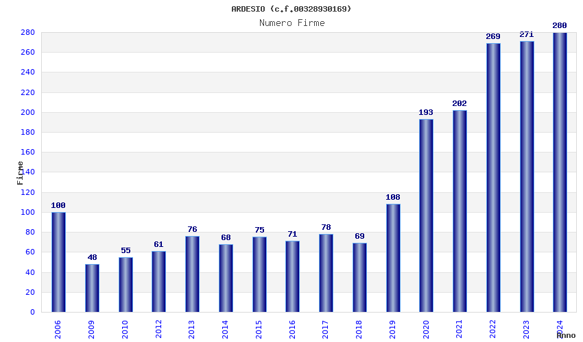 | Anno | Firme | Importi | Media | Naz. | Reg. | Prov. | Comu. |