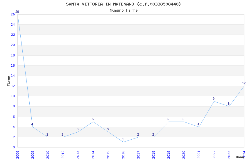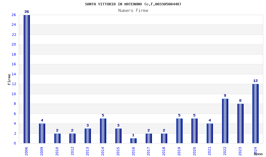 | Anno | Firme | Importi | Media | Naz. | Reg. | Prov. | Comu. |