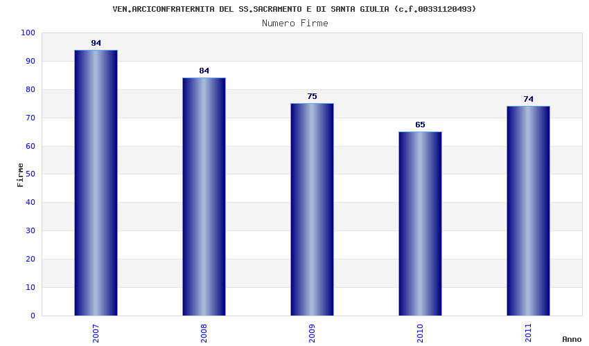| Anno | Firme | Importi | Media | Naz. | Reg. | Prov. | Comu. |