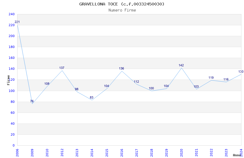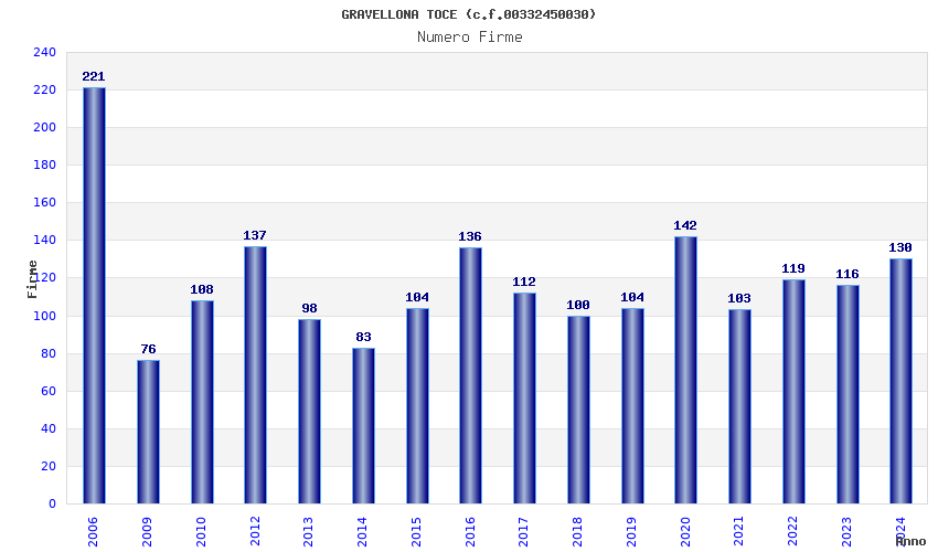 | Anno | Firme | Importi | Media | Naz. | Reg. | Prov. | Comu. |